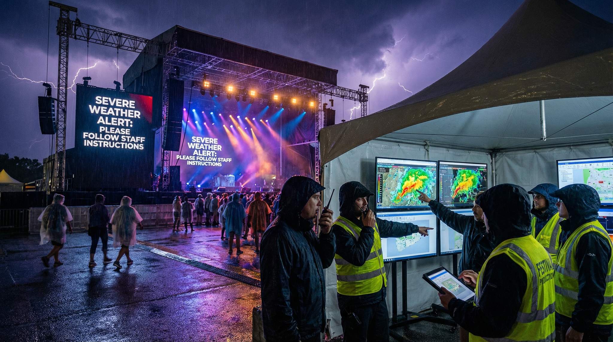 - Always have a detailed weather contingency plan. Prepare for all scenarios (thunderstorms, heat, wind, floods, wildfire smoke) and define clear thresholds for when to stop the show or evacuate.