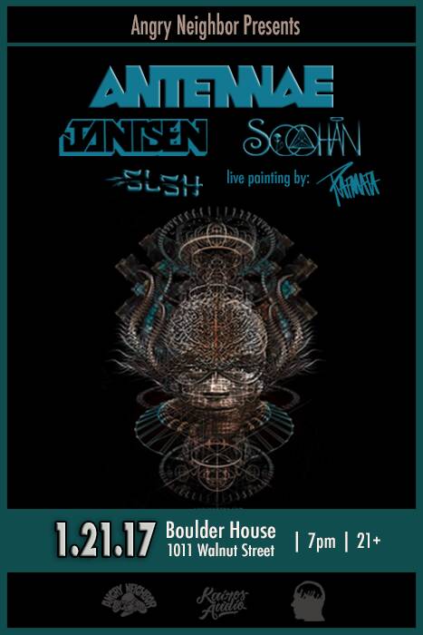 Angry Neighbor entertainment is proud to bring you their first show!! An-ten-nae, Soohan, Jantsen, and SL/SH. We are bringing a custom sound system to Boulder House that will bring you all the bass waves straight to the dome!!