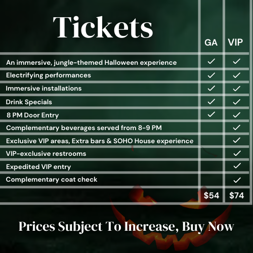 - Refer 10 Tickets: Get 100% off your ticket plus a $50 bar tab!