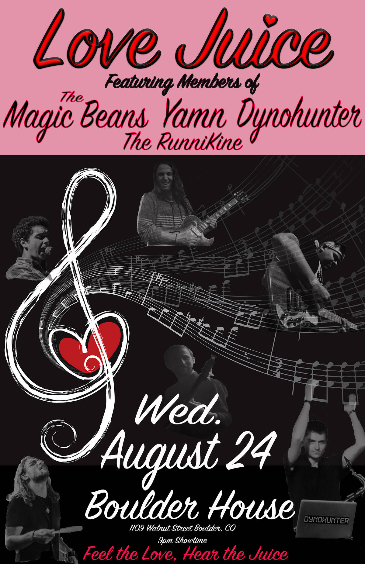 LOVE JUICE will be performing at the Boulder House at 1109 Walnut street in Boulder, CO on Wednesday August 24th. Doors at 8pm, show at 9pm. $5 presale tickets will be available shortly.
