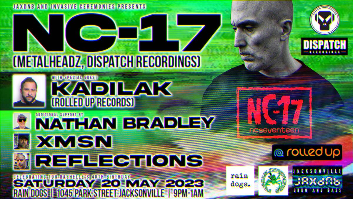 Invasive Ceremonies and JaxDnB present for the first time in Jacksonville, to celebrate Rashelle's 40th birthday, Metalheadz and Dispatch Recordings artist NC-17!