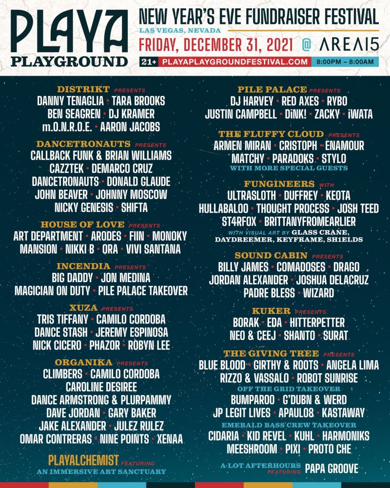 Playa Playground will be an immersive and interactive sensory experience, unlike anything Las Vegas has to offer. The New Year’s festival will span across 3 venues within AREA15 featuring 5 different playa-style Sound Camps, 6 art car stages, interactive art installations, food trucks, games, carnival rides, and a myriad of other entertaining attractions. The overarching vision for the event is to bring the famed Playa to a new venue for AREA15’s first official New Year’s party.
