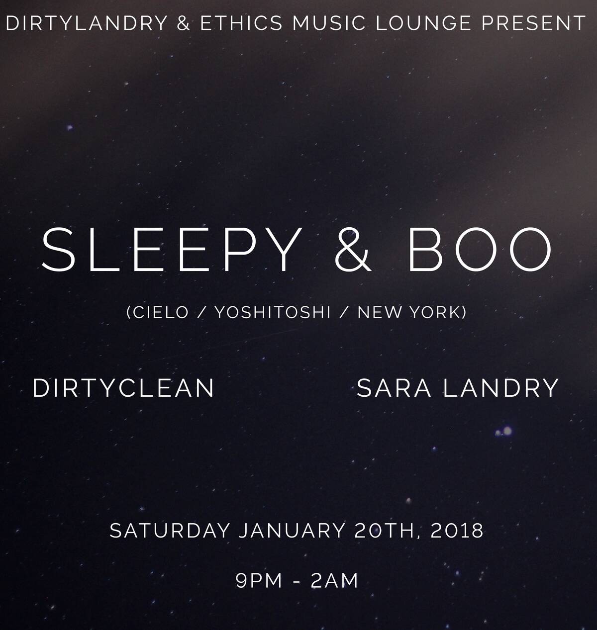 DirtyLandry Saturdays kicks off 2018 by hosting our amazingly talented friends Sleepy & Boo from NYC!